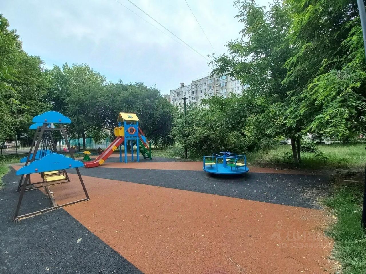 Во дворе детская и спортивная площадки.