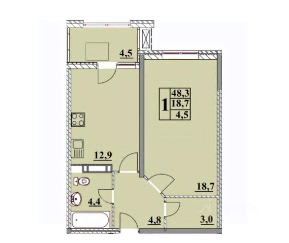 О КВАРТИРЕ: Просторная однокомнатная квартира площадью 48,3 кв м Мебель и техника остаются новым собственникам Ортопедический матрас Аскона Просторная лоджия
