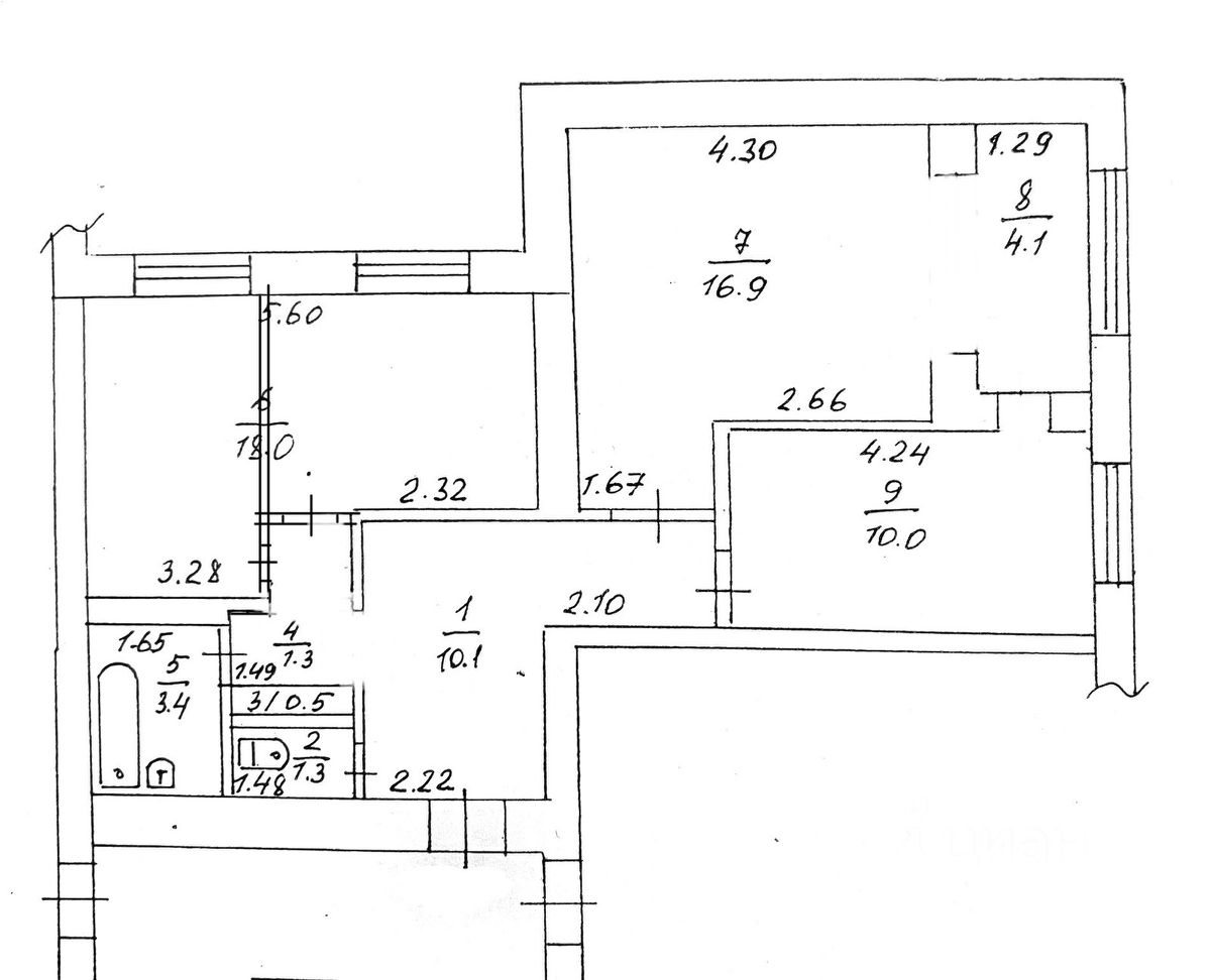 -туалет : 1,3 кв.м.