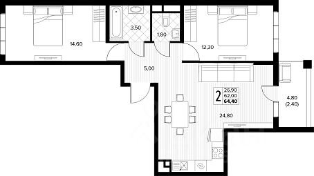 Продаётся 2-комнатная квартира в строящемся доме (поз.6), срок сдачи: IV-кв. 2027, общей площадью 64.4 кв.м., на 5 этаже. Новый жилой комплекс ''Кипарис'' от застройщика ''AVA'' расположен по адресу: Россия, Краснодарский край, муниципальный округ Анапа, село Сукко, Мирная улица