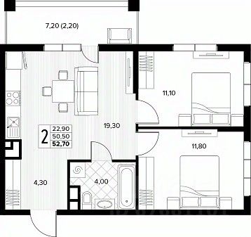 Продаётся 2-комнатная квартира в строящемся доме (поз.7), срок сдачи: IV-кв. 2027, общей площадью 52.7 кв.м., на 2 этаже. Новый жилой комплекс ''Кипарис'' от застройщика ''AVA'' расположен по адресу: Россия, Краснодарский край, муниципальный округ Анапа, село Сукко, Мирная улица