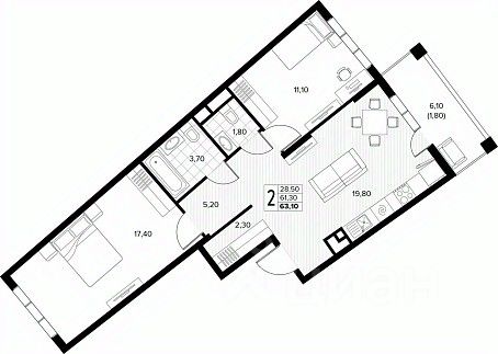 Продаётся 2-комнатная квартира в строящемся доме (поз.7), срок сдачи: IV-кв. 2027, общей площадью 63.1 кв.м., на 4 этаже. Новый жилой комплекс ''Кипарис'' от застройщика ''AVA'' расположен по адресу: Россия, Краснодарский край, муниципальный округ Анапа, село Сукко, Мирная улица