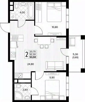 Продаётся 2-комнатная квартира в строящемся доме (поз.7), срок сдачи: IV-кв. 2027, общей площадью 53.9 кв.м., на 6 этаже. Новый жилой комплекс ''Кипарис'' от застройщика ''AVA'' расположен по адресу: Россия, Краснодарский край, муниципальный округ Анапа, село Сукко, Мирная улица