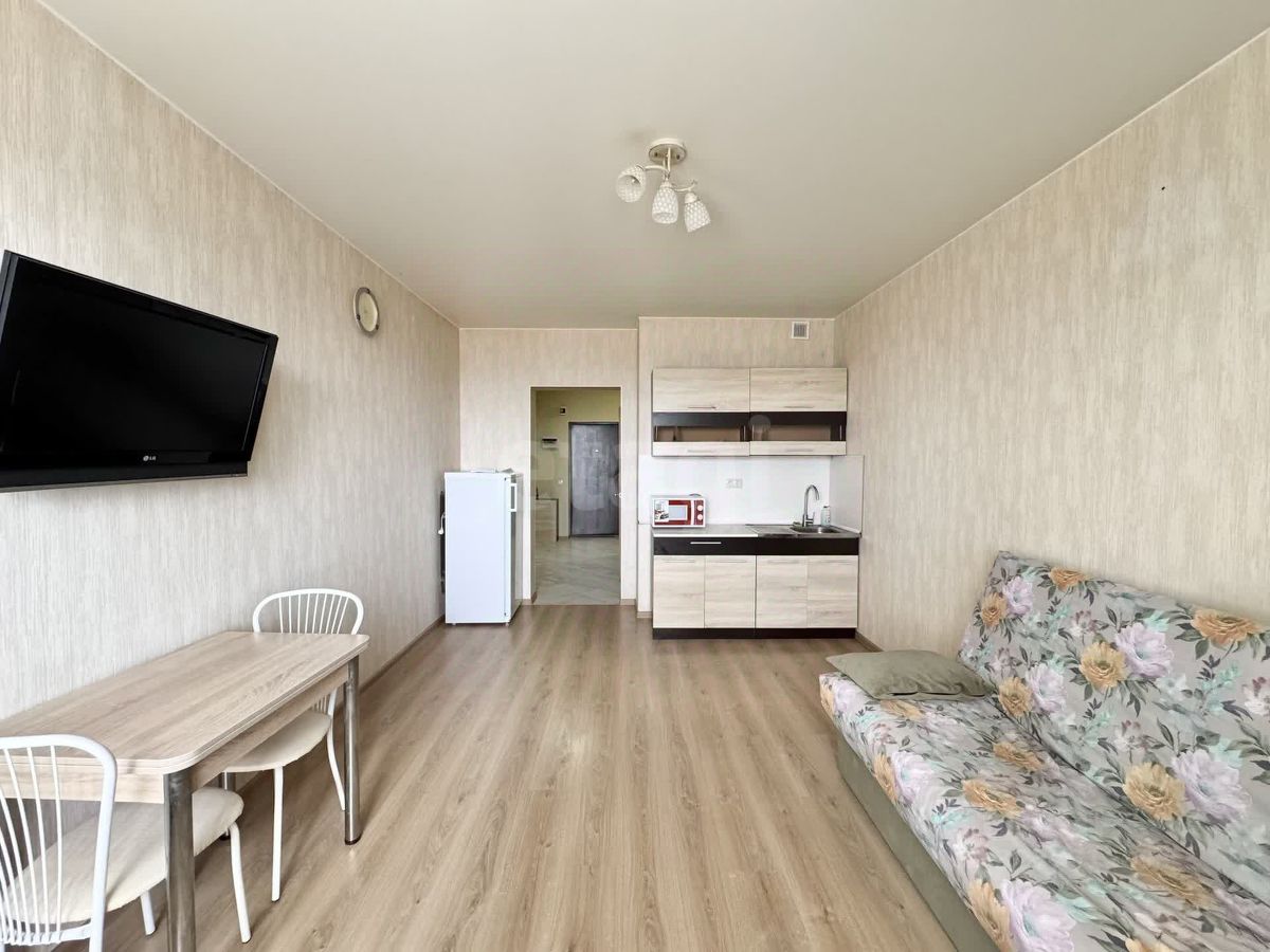 Продается с видом на море квартира-студия в жилом комплексе Вертикаль города-курорта Анапа общей площадью 33 квадратных метра. Квартира расположена на 13-ом этаже 16-этажного дома.