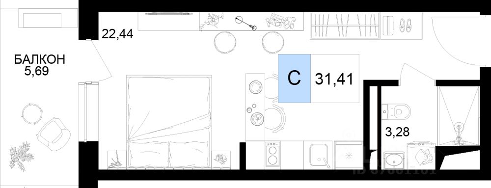 Общая площадь31,41 м2