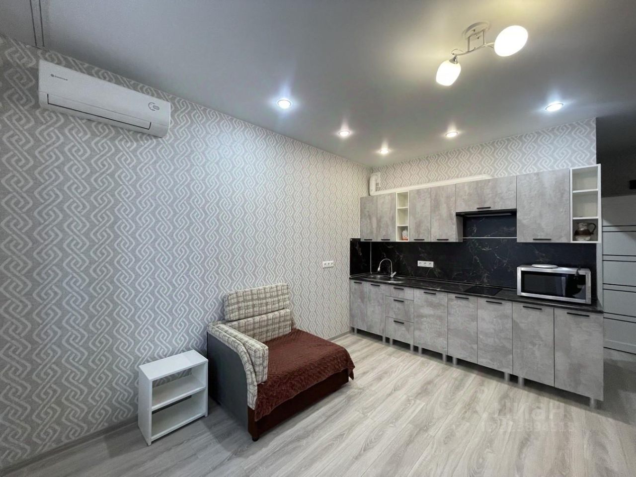 В продаже квартира-студия с современным ремонтом. Мебель и техника остается будущему собственнику. Отопление в квартире центральное (от собственной газовой котельной), что позволяет начать отопительный сезон и его закончить, не дожидаясь выполнения погодных нормативов