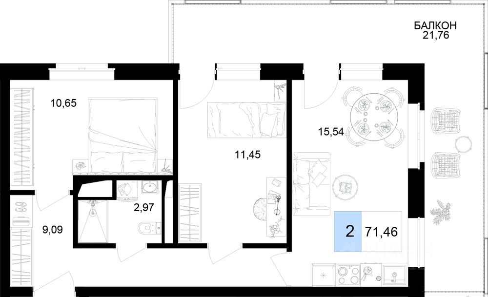Общая площадь71,46 м2