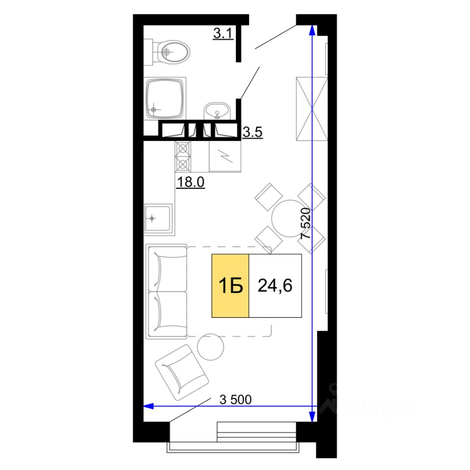 Общая площадь24,6 м2