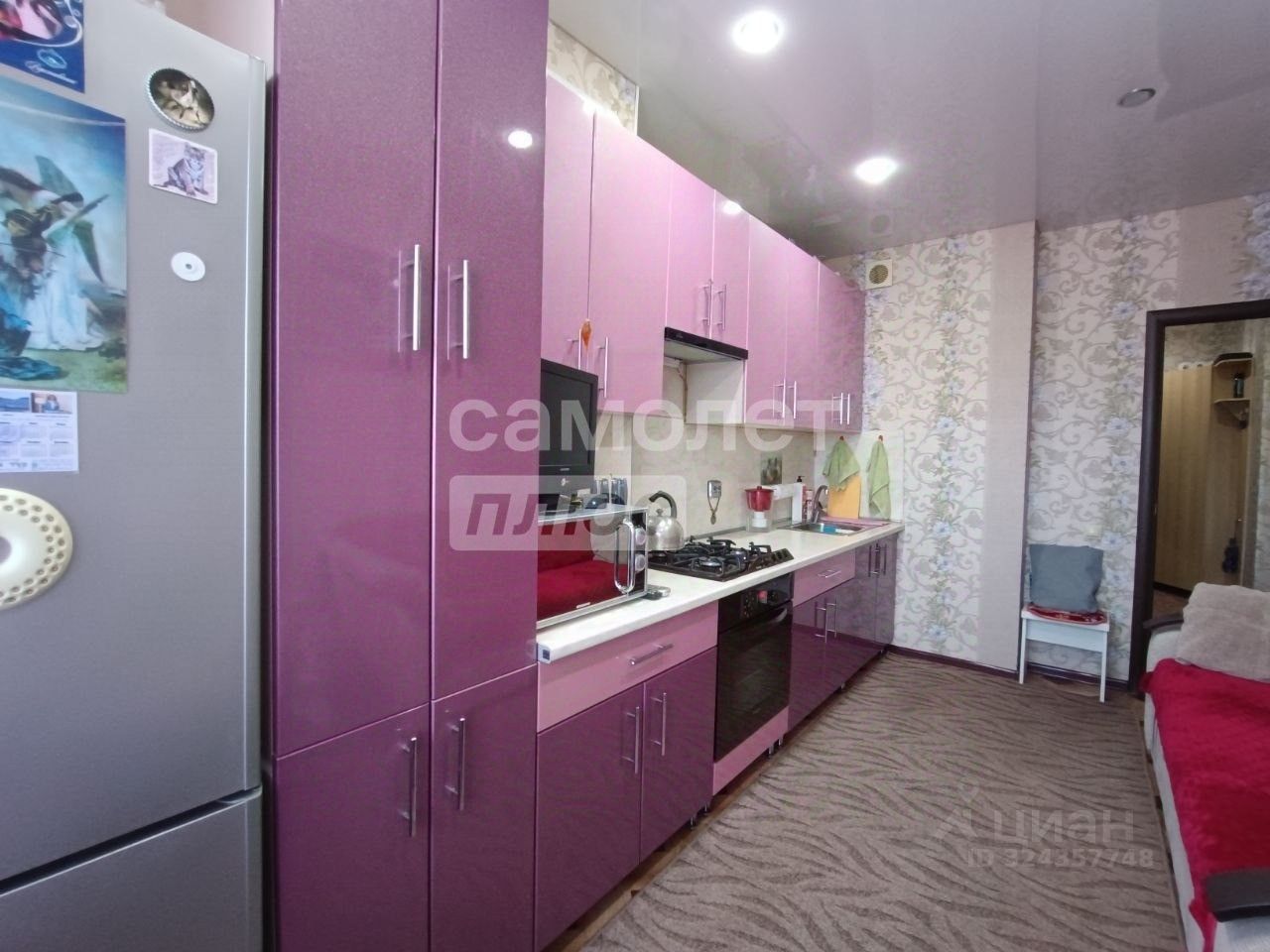 В комнате — встроенный шкаф-купе, два кондиционера, двухконтурный газовый котел. Лоджия — 5 кв. м. Квартира без обременений.