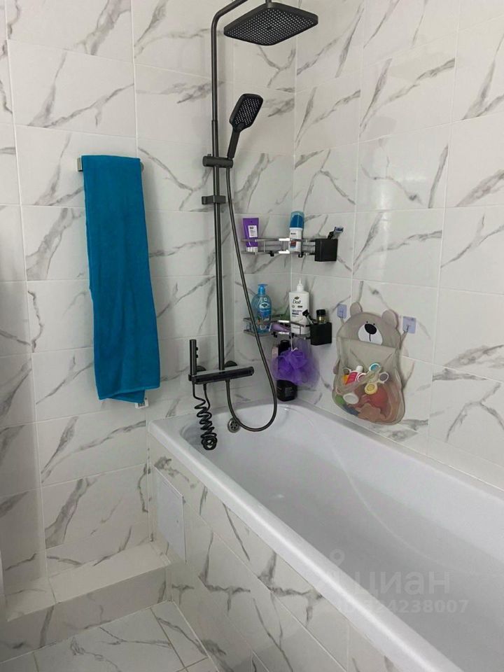Ванная комната отделана плиткой, установлена сантехника высокого качества.