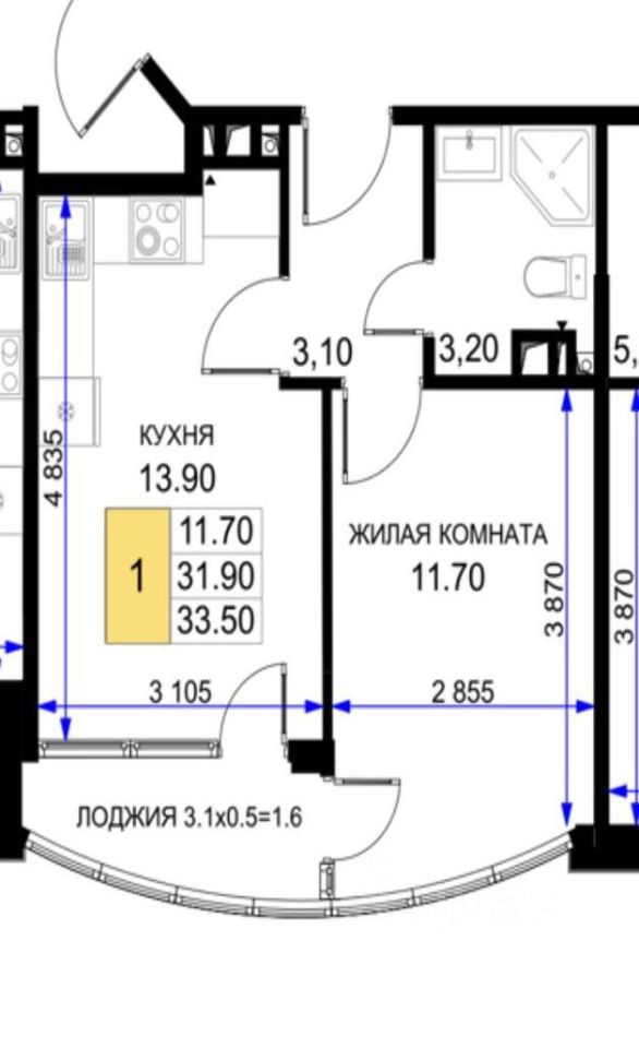 продам 1-к, Межсанаторный проезд, 20/18 990 000 ₽