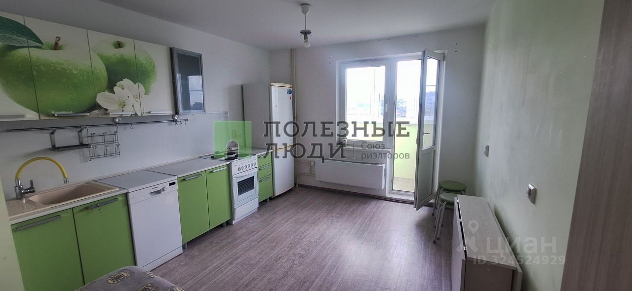 Кухня квадратной формы, спокойной встаёт диван..из кухни тоже выход на балкон.