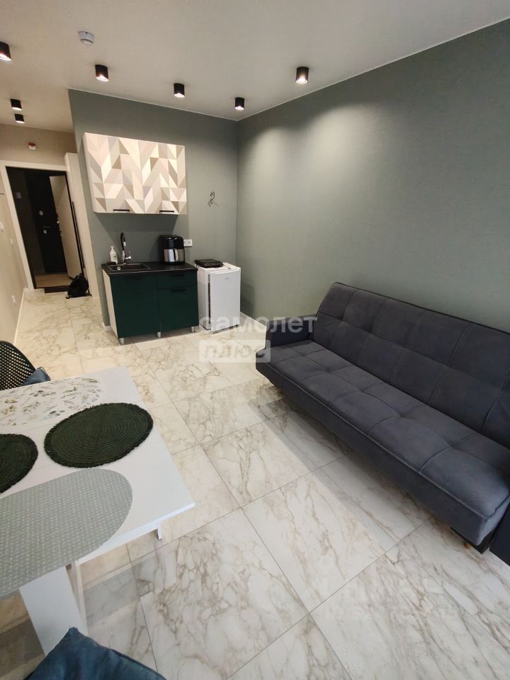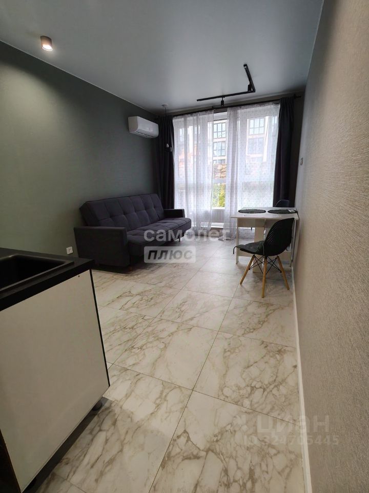 Студия расположена на 1 этаже. Просторная комната, совмещённый санузел, коридор, ремонт выполнен в светлых современных тонах. В комнате оборудована кухонная зона для приготовления пищи. В комнате есть кондиционер. На територии имеется детская площадка и платный подземный паркинг.