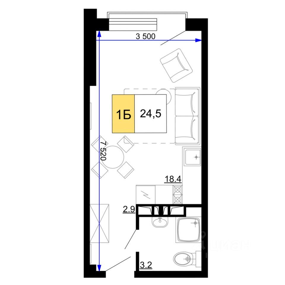 Общая площадь24,5 м2