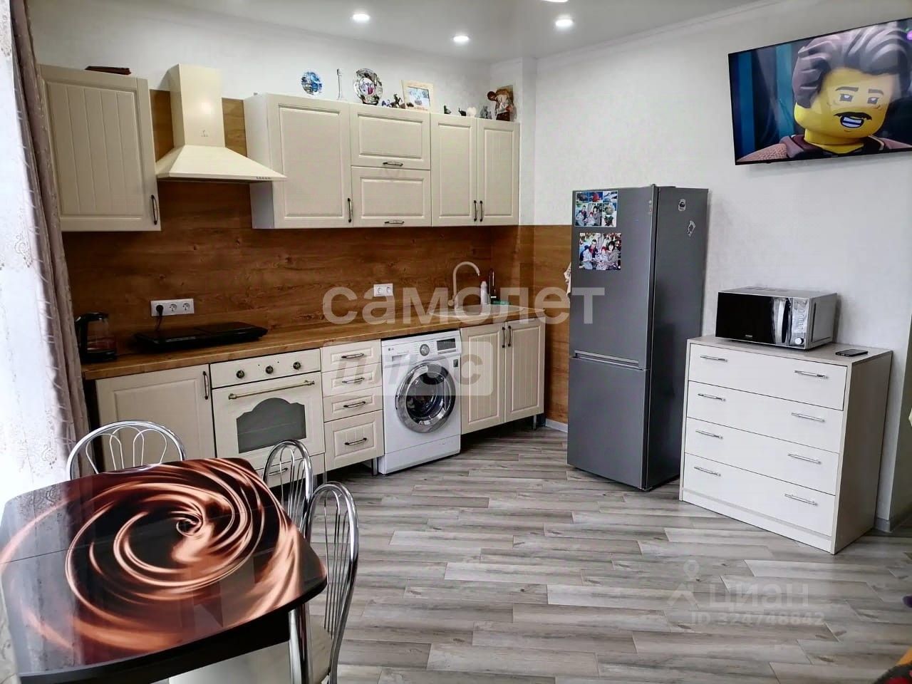 В квартире выполнен евроремонт, она полностью меблирована. Вся техника и мебель остаются новым владельцам. Закрытая охраняемая территория.Детская площадка,тренажеры. Выполнено озеленение,круглый год зеленые газоны и вечнозеленые деревья радуют глаз.