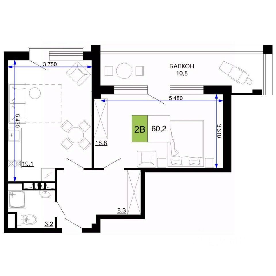 Продаются 2 комн. апартаменты, площадью 60.2 кв.м. Возможен вариант покупки с использованием ипотечных средств.
