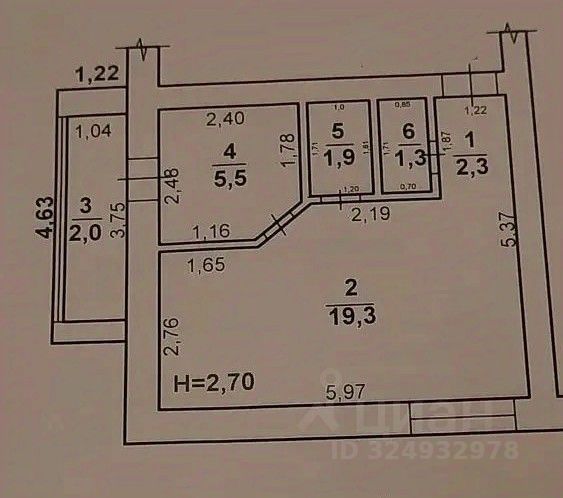 Планировка: прихожая, большой зал ( есть возможность сделать 2 комнаты), раздельный саеузел, кухня, балкон.