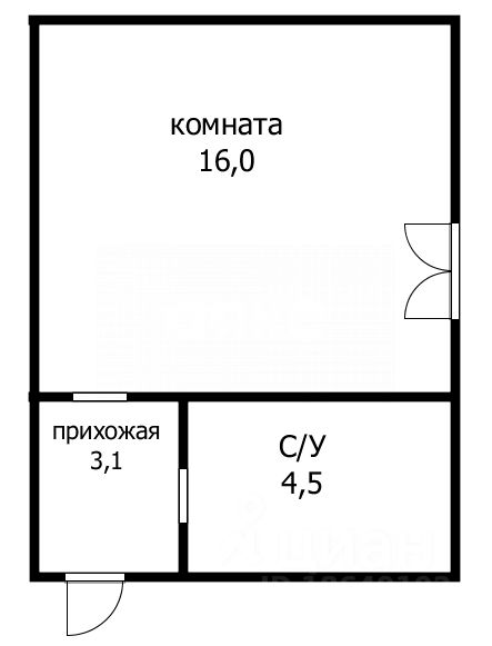 Общая площадь 25м, требуется ремонт.