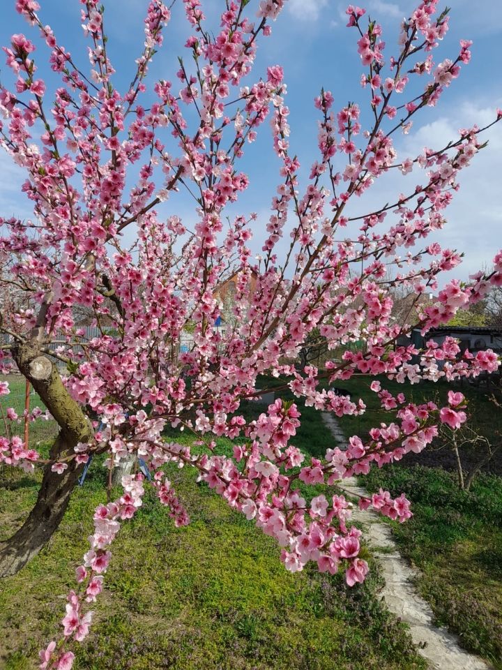 Украшением дома является плодоносящий сад, цветы.