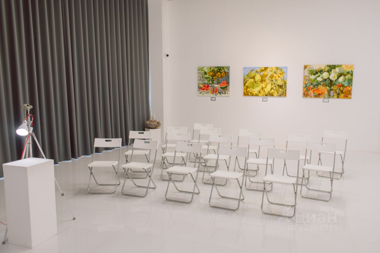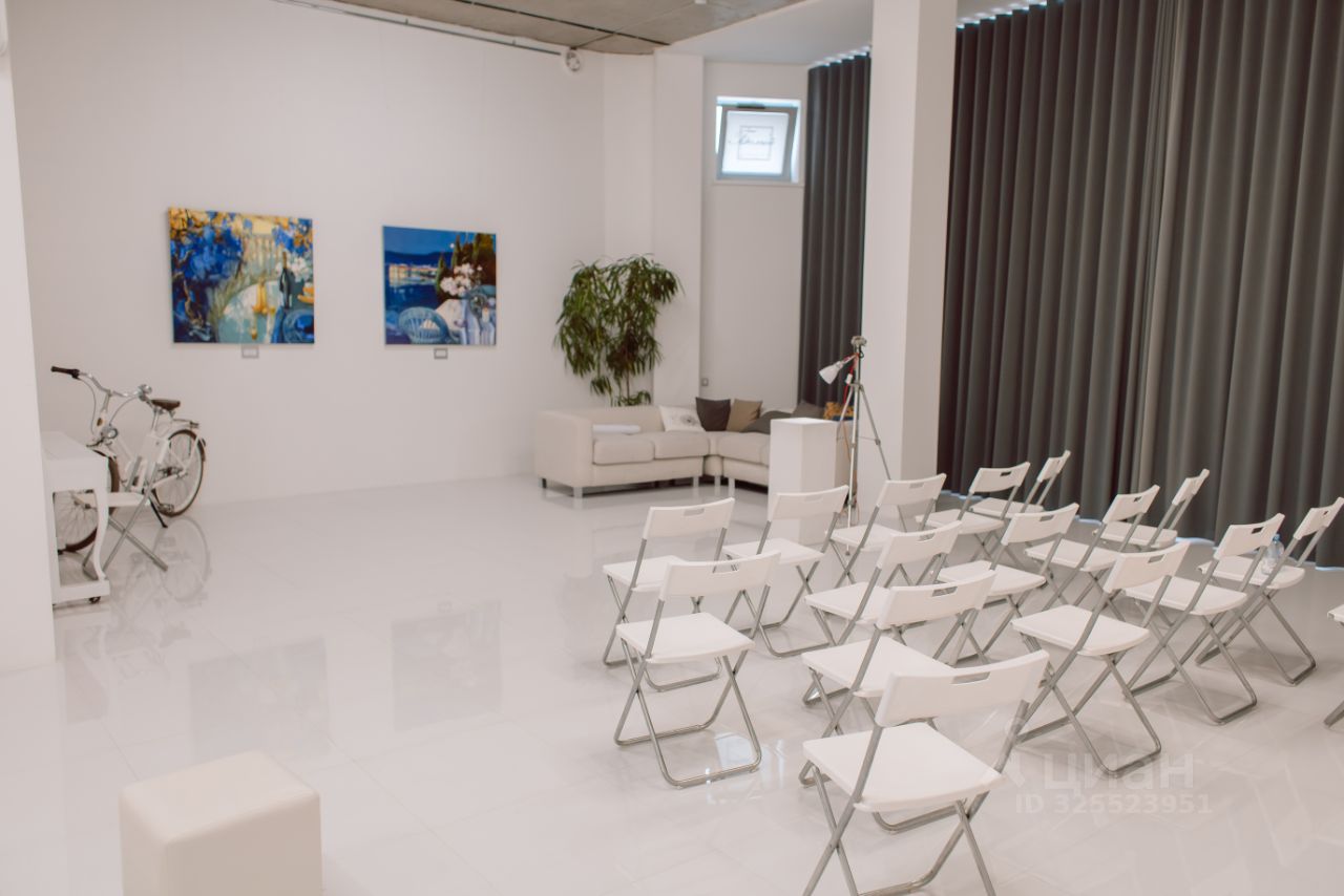 Основные характеристики: •площадь: 370 м² •этаж: 2й (лифт отсутствует) •высота потолков: 3,5 м •окна: витражные •возраст помещения: 3 года •статус: в собственности (не субаренда)