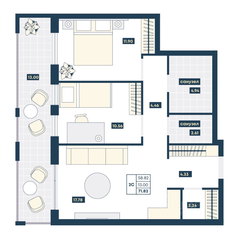 Общая площадь71,82 м2