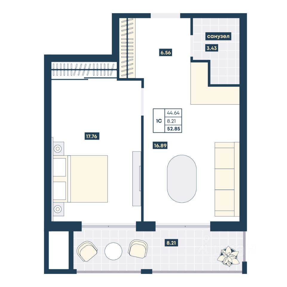 Общая площадь52,85 м2
