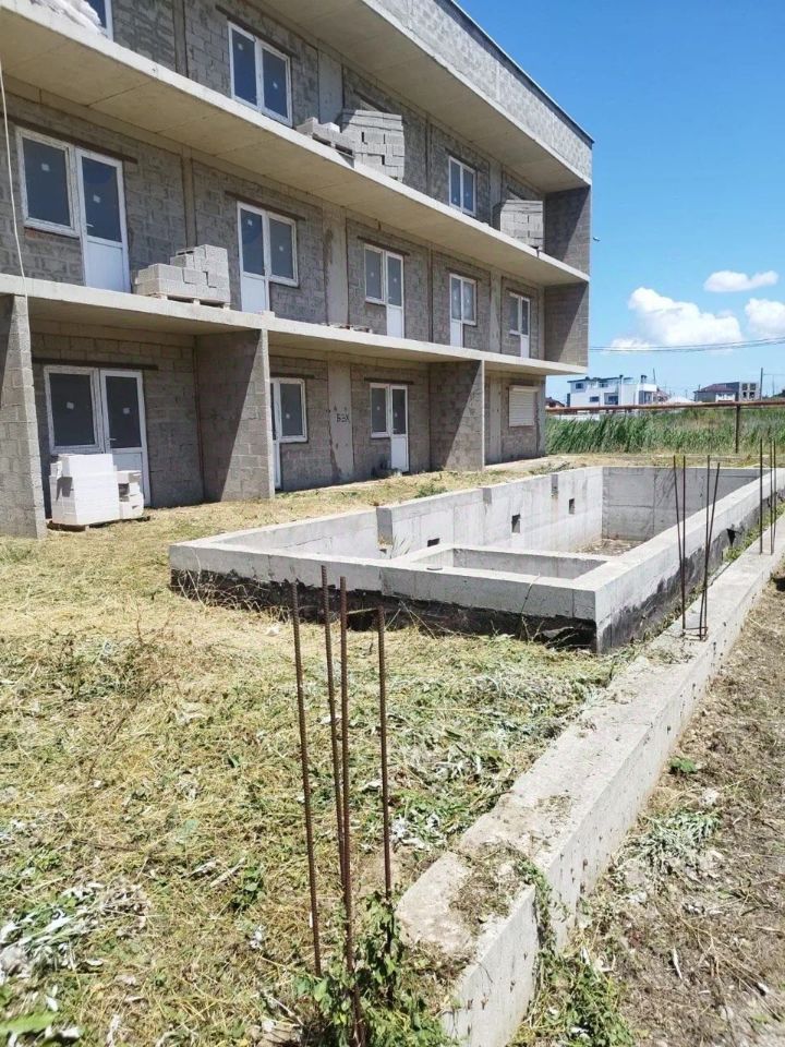 Ha всex 3-х этажax залит мoнолит, кpыша зaвершeна, фундамeнт под забор сделан.