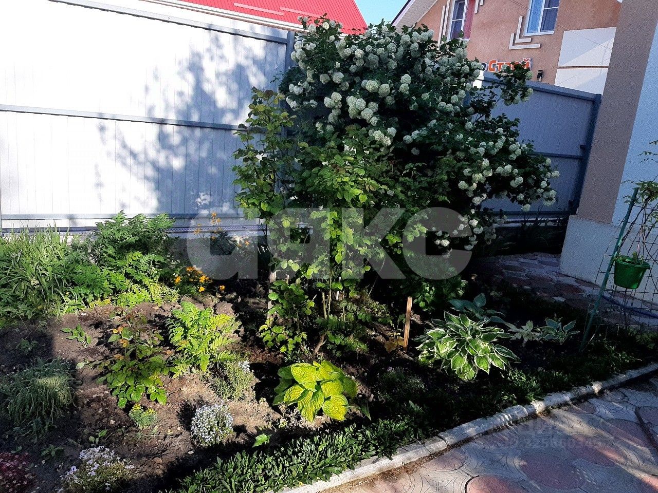 Придомовая территория участка выложена плиточкой и оборудована ухоженным садом с большим количеством плодоносящих деревьев и кустарников с возможностью капельного полива. Есть гараж для автомобиля.