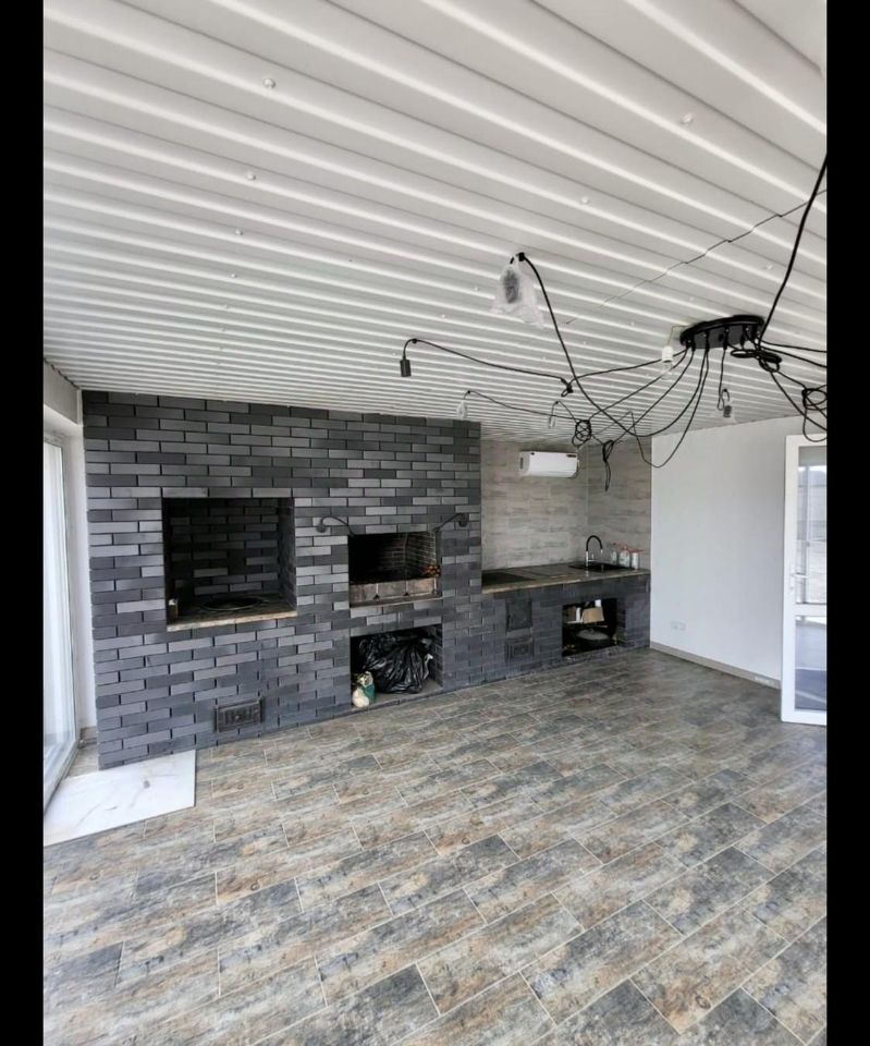1 этаж: просторная терраса, мангальная зона (мангал, тандыр, казан), сауна. 2 этаж: 2 спальни и 2 санузла.