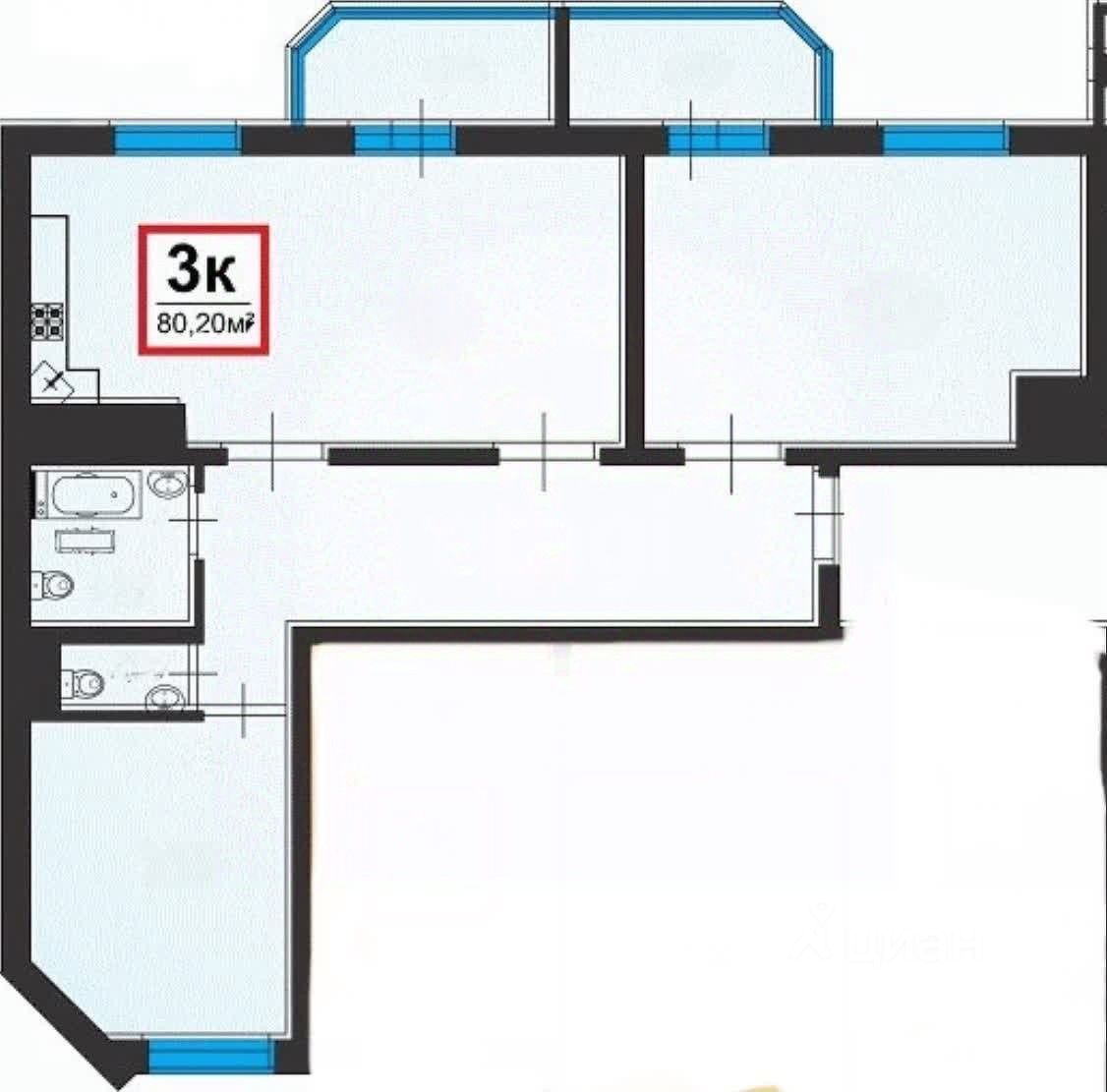 Евро-трехкомнатная с просторной кухней-гостинной, двумя балконами и большой террасой!