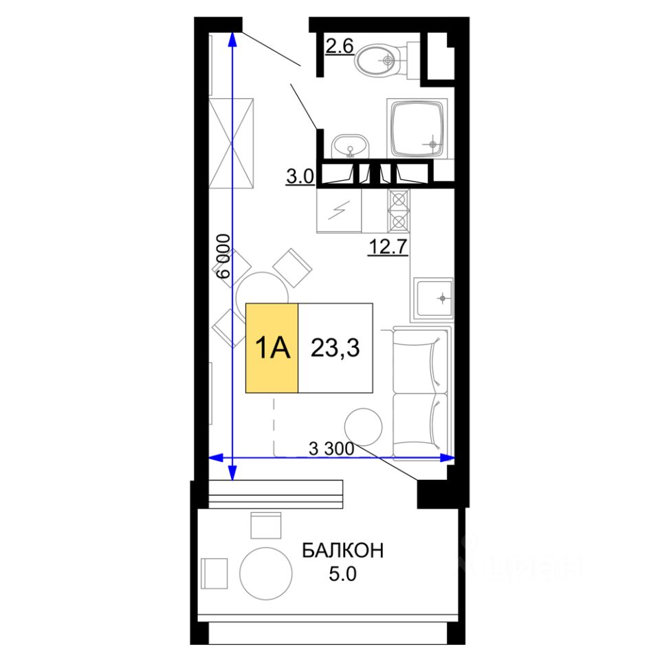 Общая площадь23,3 м2