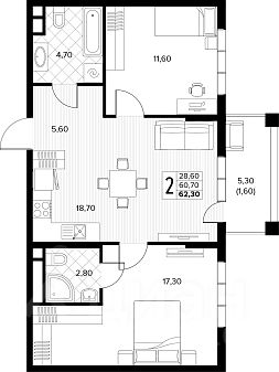 Продаётся 2-комнатная квартира в строящемся доме (поз.8), срок сдачи: II-кв. 2026, общей площадью 62.3 кв.м., на 7 этаже. Новый жилой комплекс ''Кипарис'' от застройщика ''AVA'' расположен по адресу: Россия, Краснодарский край, муниципальный округ Анапа, село Сукко, Мирная улица