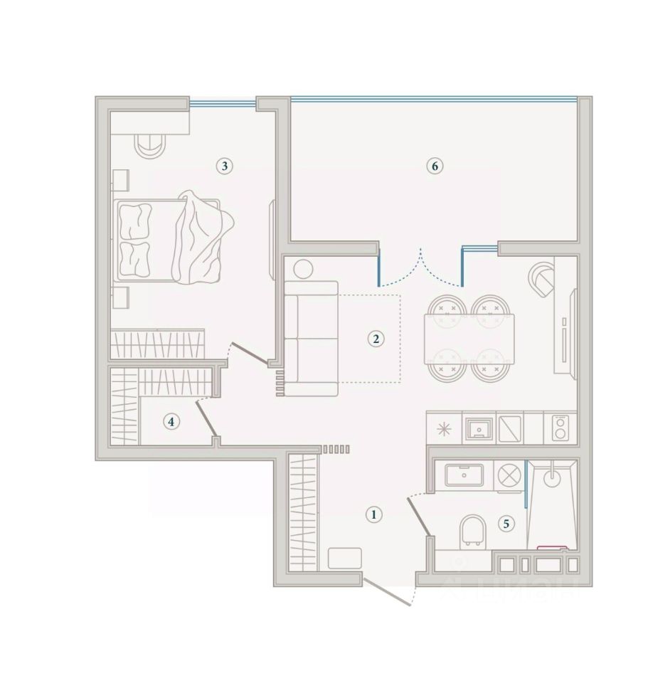 Общая площадь58,5 м2