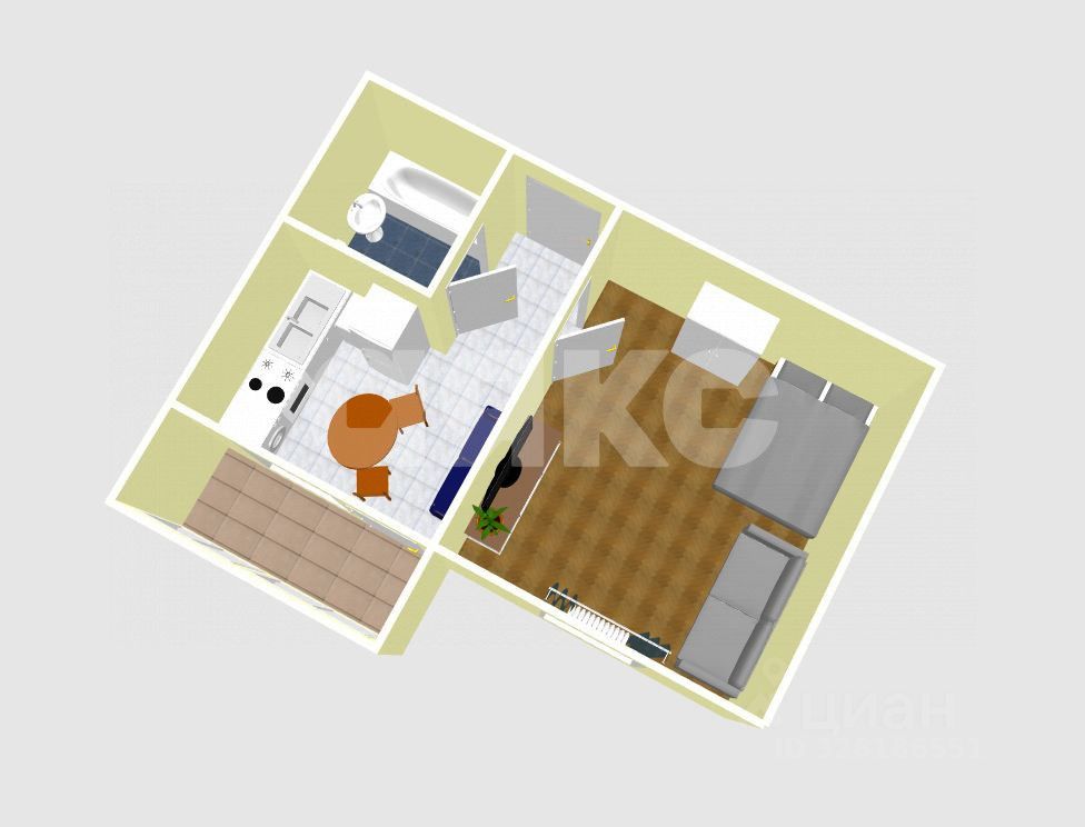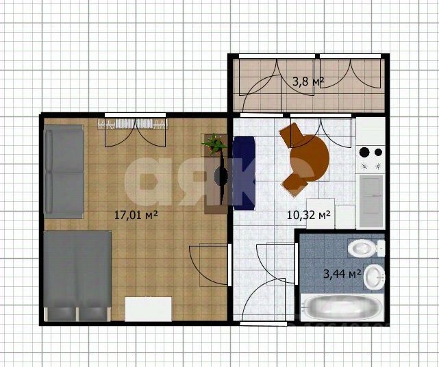 Площадь жилой комнаты 17 квадратных метров , площадь кухни 10 м2 - просторная планировка правильной формы даже позволит установить диван.