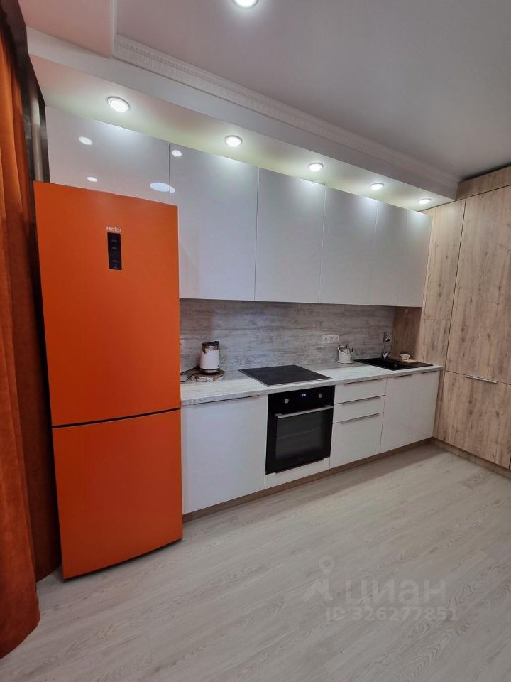 В квартире остается вся новая мебель: кухонный гарнитур со встроенной техникой. Спальный гарнитур с кроватью и шкафом. Диван в гостинной.