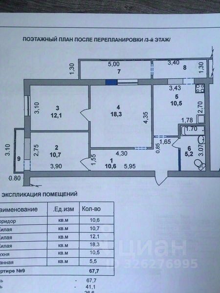 Квартира 3 комнаты, лоджия, балкон, квартира после капетального ремонта.