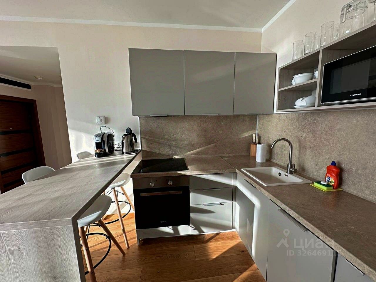 О квартире: - Общая площадь: 73,7 м² - Планировка: - Просторная кухня-гостиная — 28 м² - Две жилые комнаты по 15 м² каждая - Совмещенный санузел - Этаж: 13 - Ремонт и мебель: Квартира полностью готова к проживанию! с ремонт, современная мебель и вся необходимая техника: стиральная машина, холодильник, СВЧ-печь, посудомоечная машина.