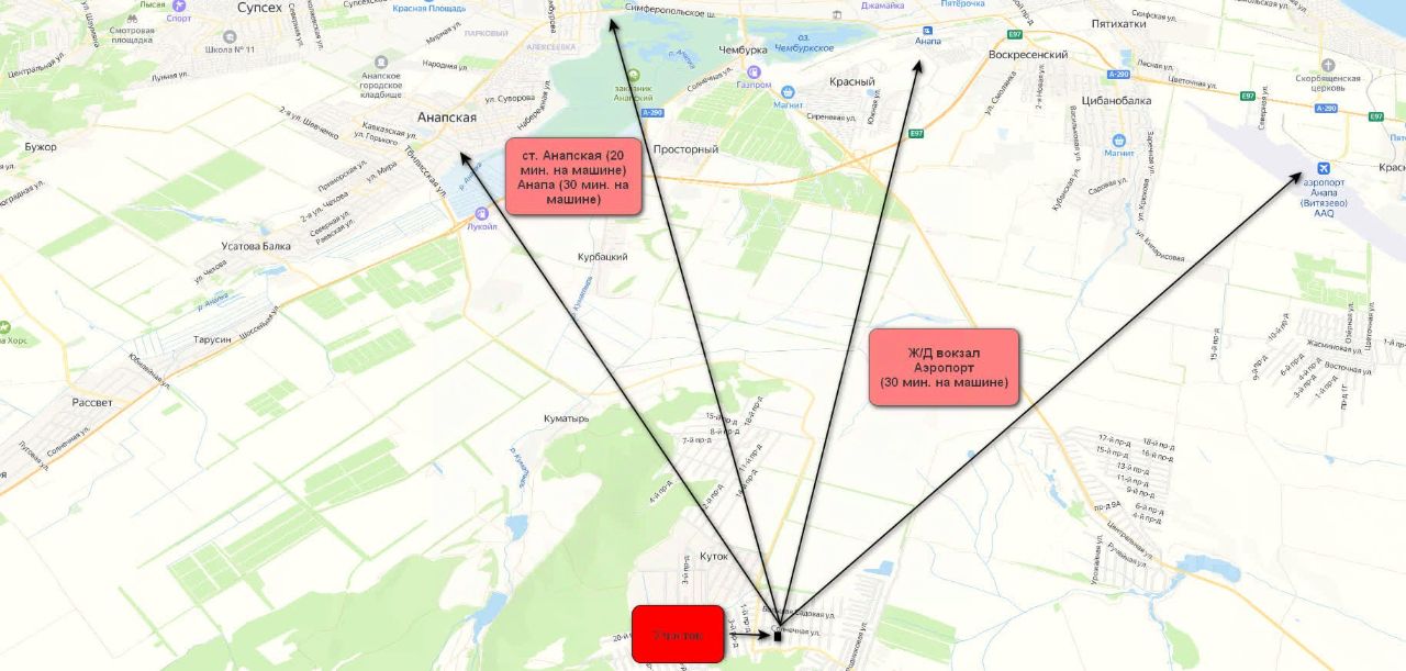 В 15 минутах езды находится ст. Анапская где есть вся необходимая инфраструктура: продуктовые магазины Магнит - Пятёрочка, школа 12 - 21, Амбулатория 1.