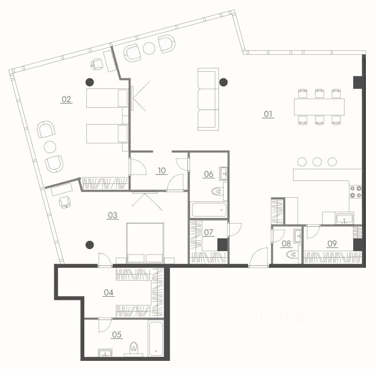 О квартире: - Общая площадь: 175 м² - Планировка: - Просторная кухня-гостиная — 80 м² - Две жилые комнаты: 18,5 м² и 17,5 м² - Два совмещенных санузла - Кладовая - Этаж: 13 - Ремонт: Квартира с выполненным ремонтом!