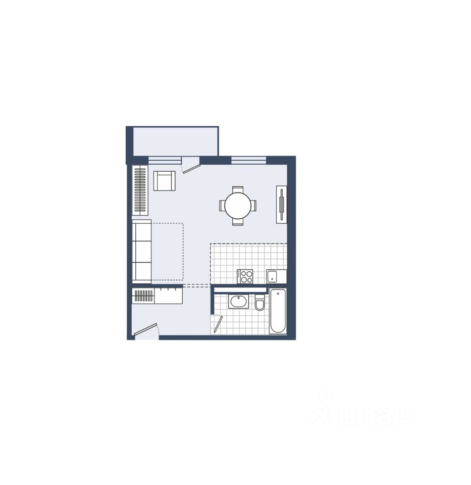**Площадь:** 44,1 м², включая: - Студию, которая идеально объединяет пространство кухни и гостиной для комфортного проживания. - Современный санузел для вашего удобства. - Гардеробную для хранения вещей. - Балкон, где вы сможете наслаждаться утренним кофе или вечерними закатами.