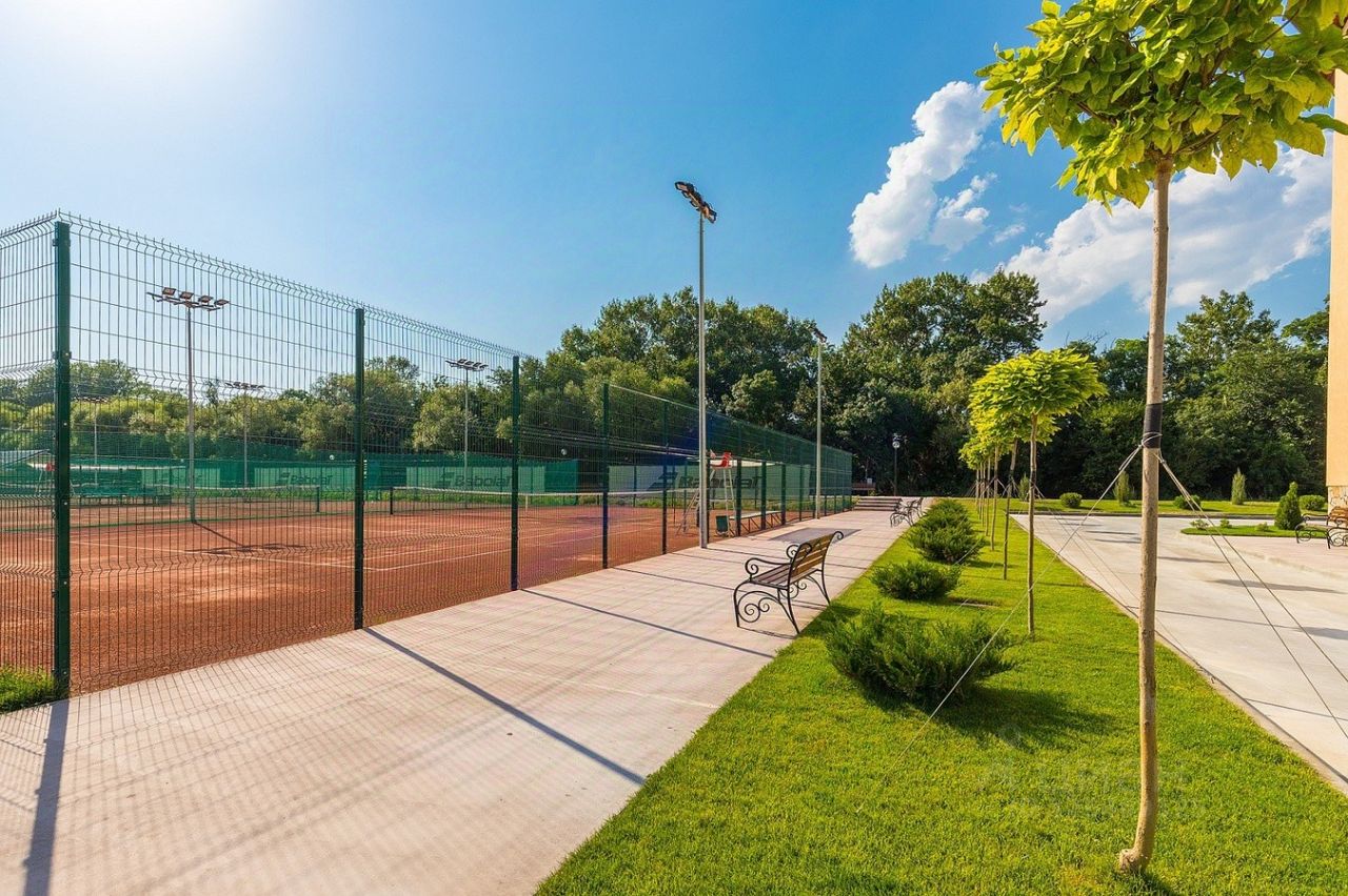 **Комплекс:** Закрытый жилой комплекс с современными системами видеонаблюдения и охраны обеспечивает высокий уровень безопасности. Здесь вы найдёте все необходимые удобства: прогулочные аллеи для приятных прогулок, освежающий бассейн, уютную зону для барбекю и теннисные корты для активного отдыха.