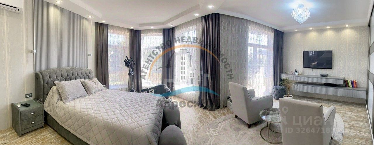 Первый дом для проживания хозяев: качественным ремонт, мебель и бытовая техника, общая площадь 240 кв.м. Планировка: В доме три спальни, кабинет, гардеробная, большая кухня-столовая, все помещения светлые с панорамными окнами, которые придают комнатам дополнительный уют.