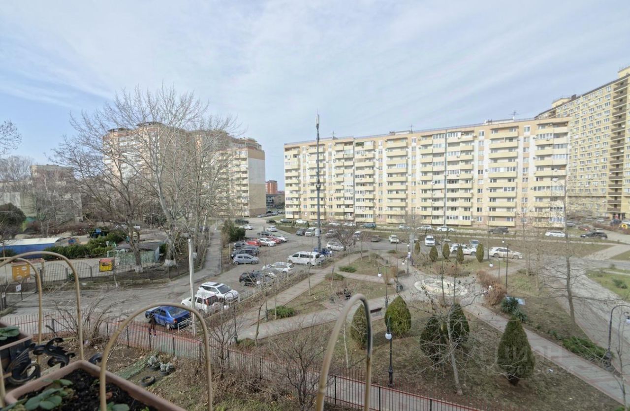 Из окон квартиры открывается просторный вид на зону отдыха с фонтаном.