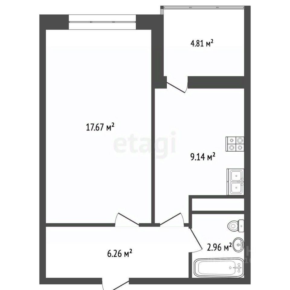 Просторная комната 18м, гардеробная, укомплектованная кухня и большая лоджия!