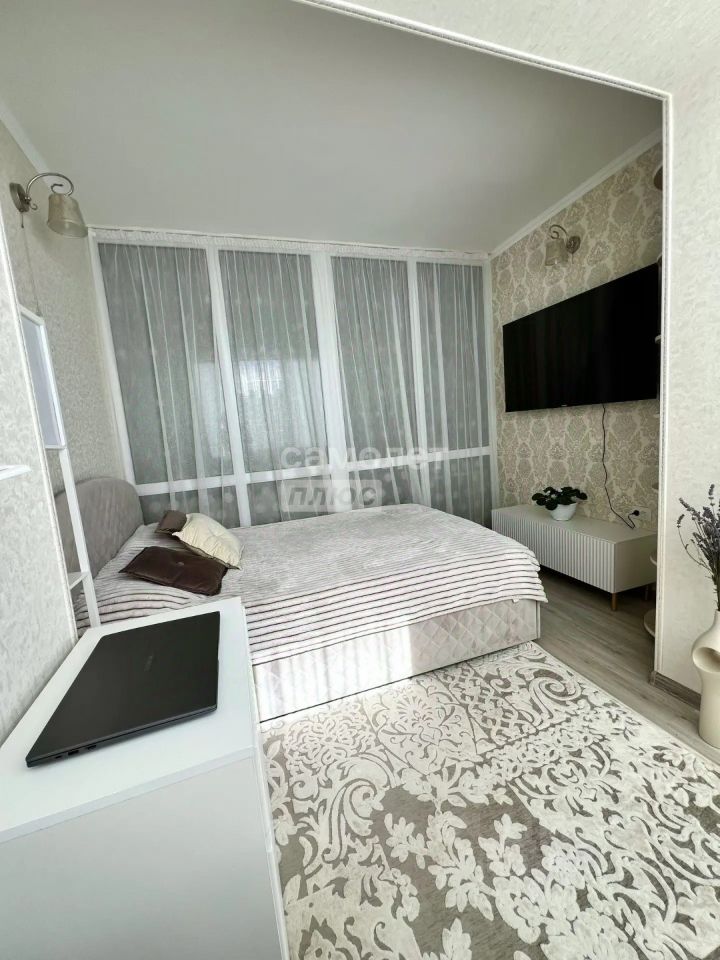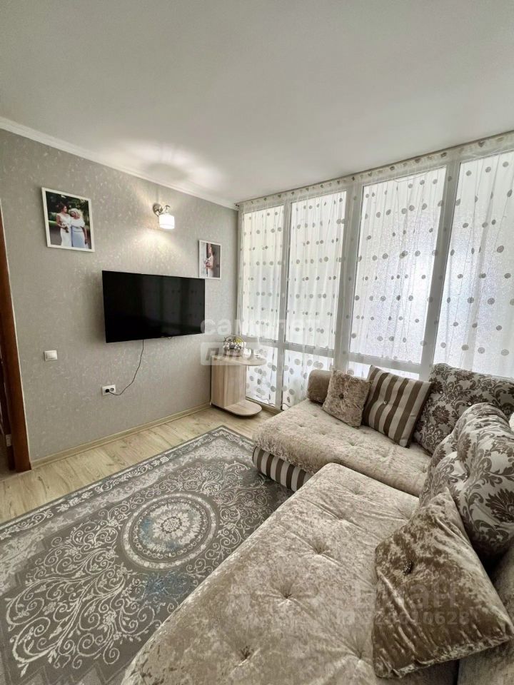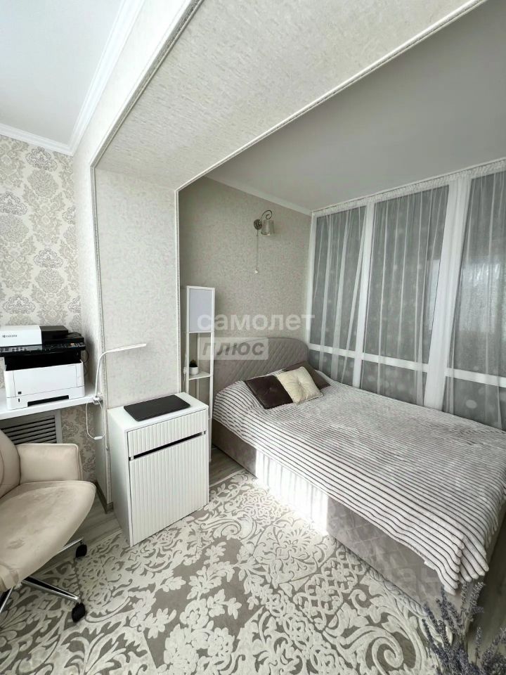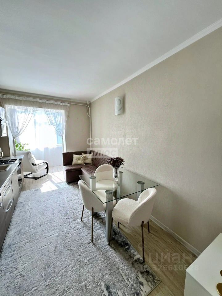 Квартира светлая и теплая, комнаты изолированы. Одна из них разделена стеклянной перегородкой на спальню и гостиную. В каждую можно войти отдельно. Сделан хороший ремонт, остается мебель (не остается белые тумбы, банкетка, кресла, стулья, телевизоры, микроволновая печь, мультиварка, принтер).