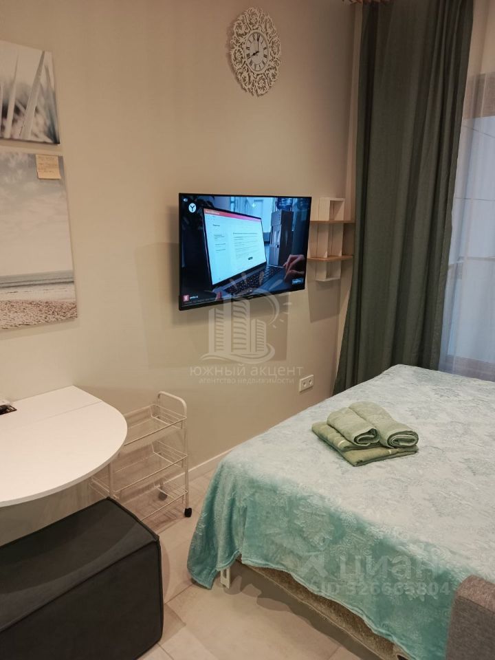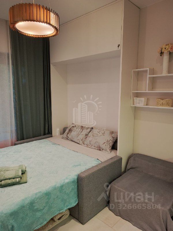 Студия расположена на 3 этаже, общая площадь 19.2 кв.м. Вся мебель, бытовая техника, текстиль, посуда остаются новым владельцам.