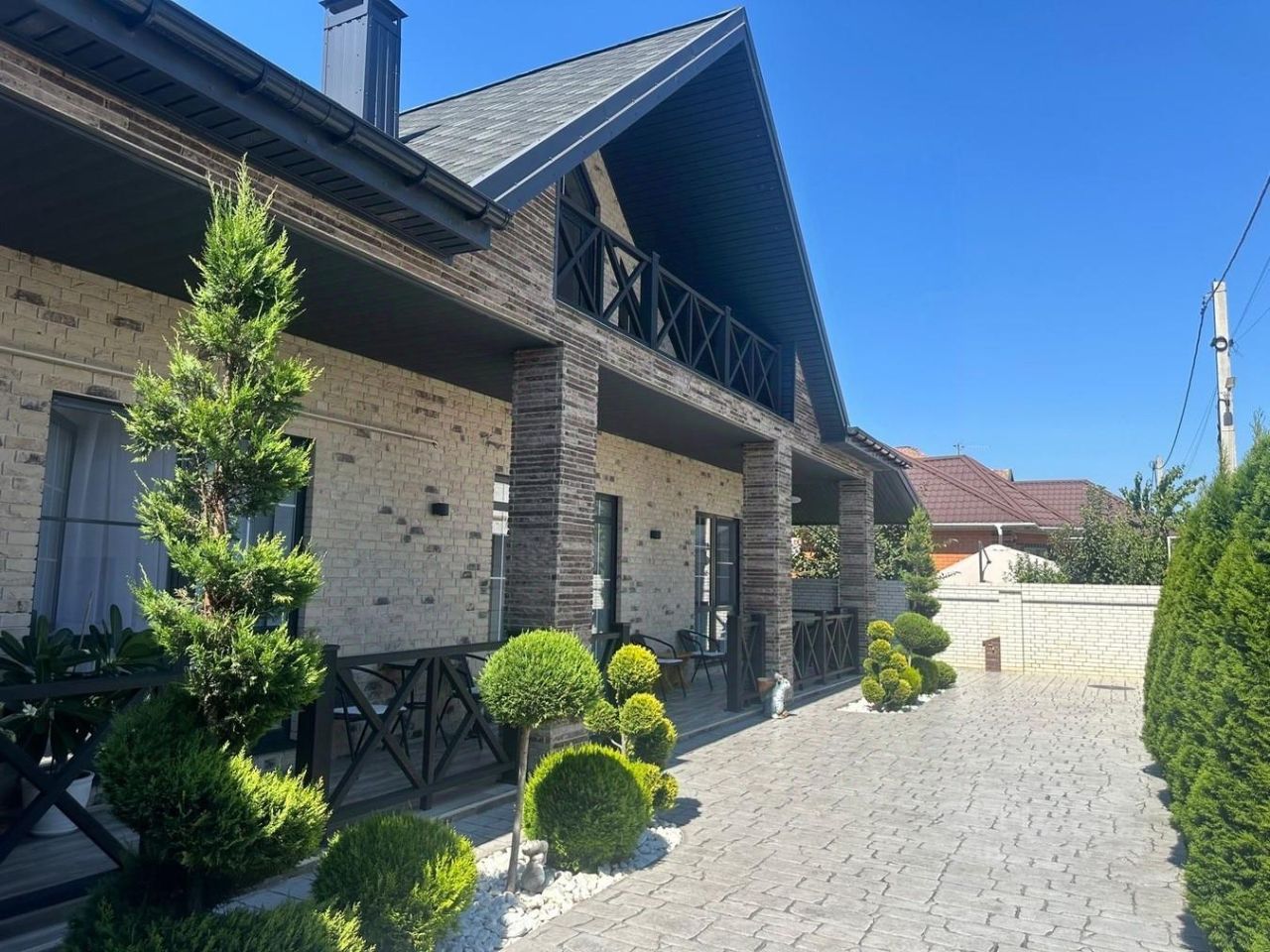 Дом сдан в эксплуатацию в 2022 г., все свежее, новое, не нуждается в ремонте. Дополнительно на территории расположено два отдельных домика для сдачи отдыхающим, пользовались повышенным спросом, в сутки до 25.000 руб.за пребывания за 1 домик. Квадратура каждого 25 м2, они представлены в виде 2-х этажных домиков, в каждом из которых на первом этаже холл с выделенной кухонной зоной, на втором этаже-спальная комната.