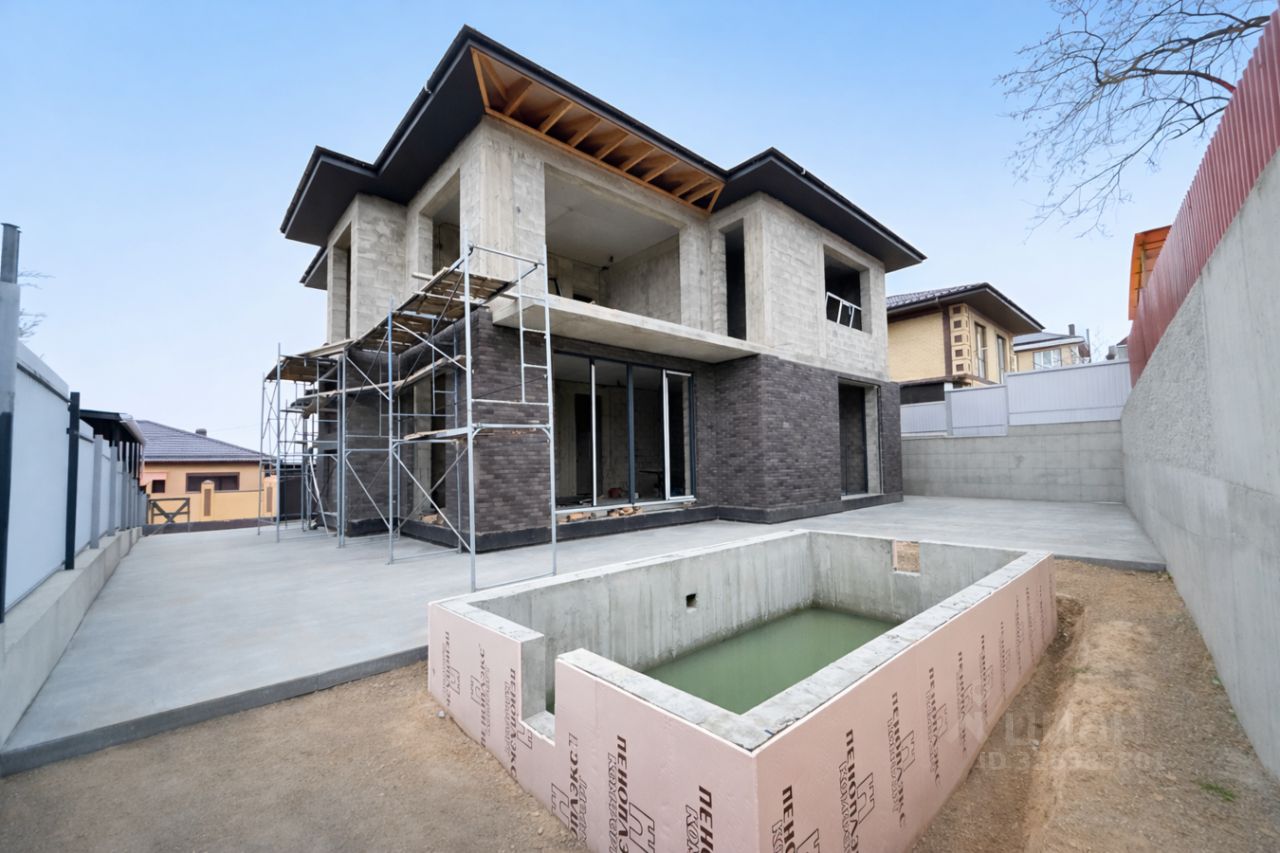 Современная архитектура в стиле ''Райт'' Панорамные окна и вид на море Продуманная планировка для большой семьи Капитальное строительство (монолит, керамзитоблок) Тихий и престижный район рядом с Анапой Основные коммуникации уже заведены