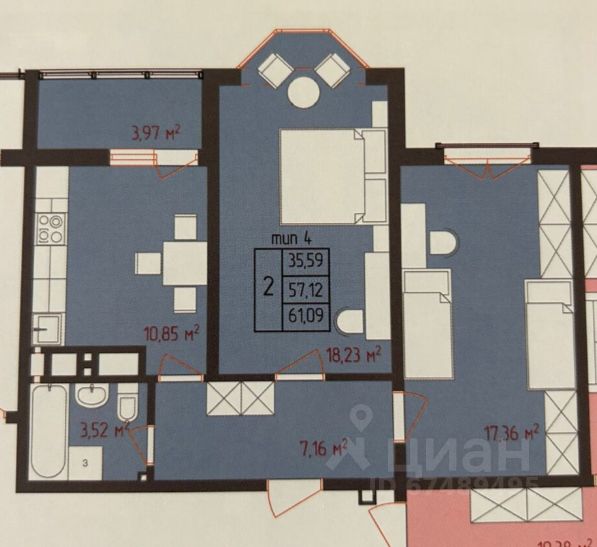 Объект 179230. Полноценная 2-комнатная квартира в жилом комплексе с закрытой территорией