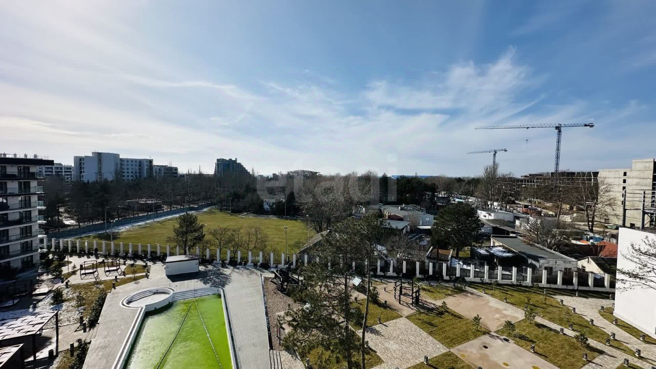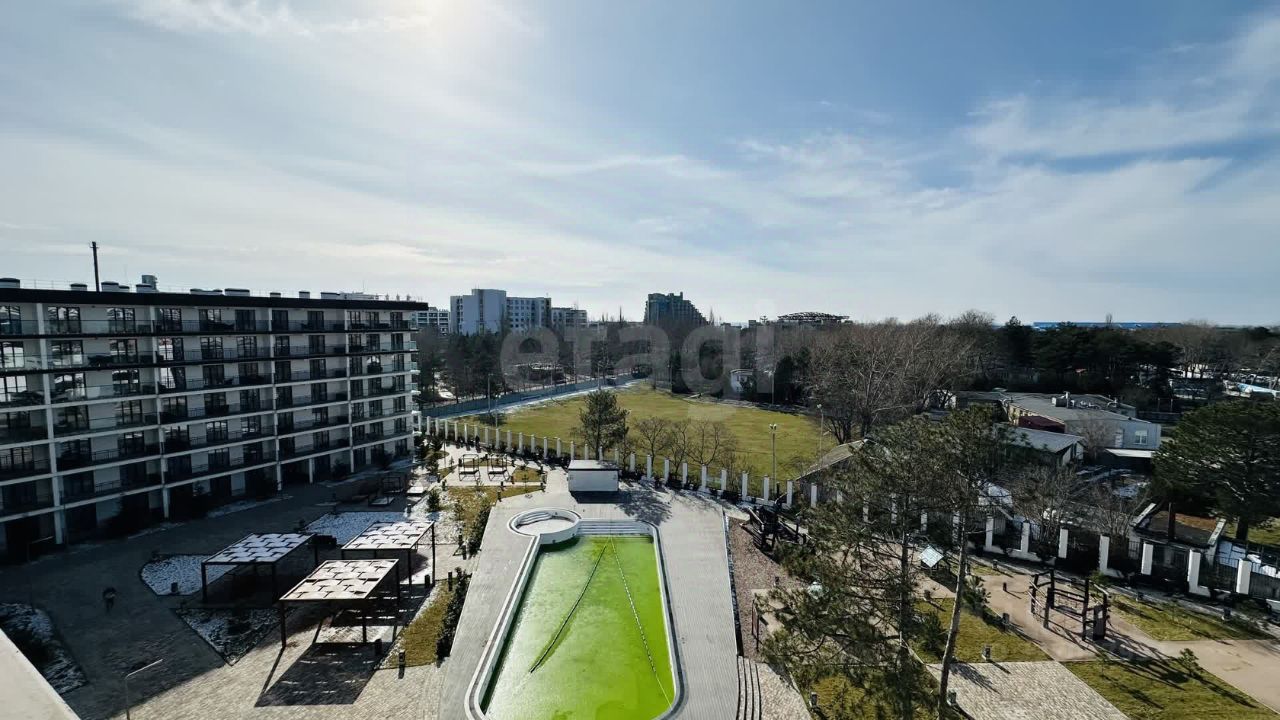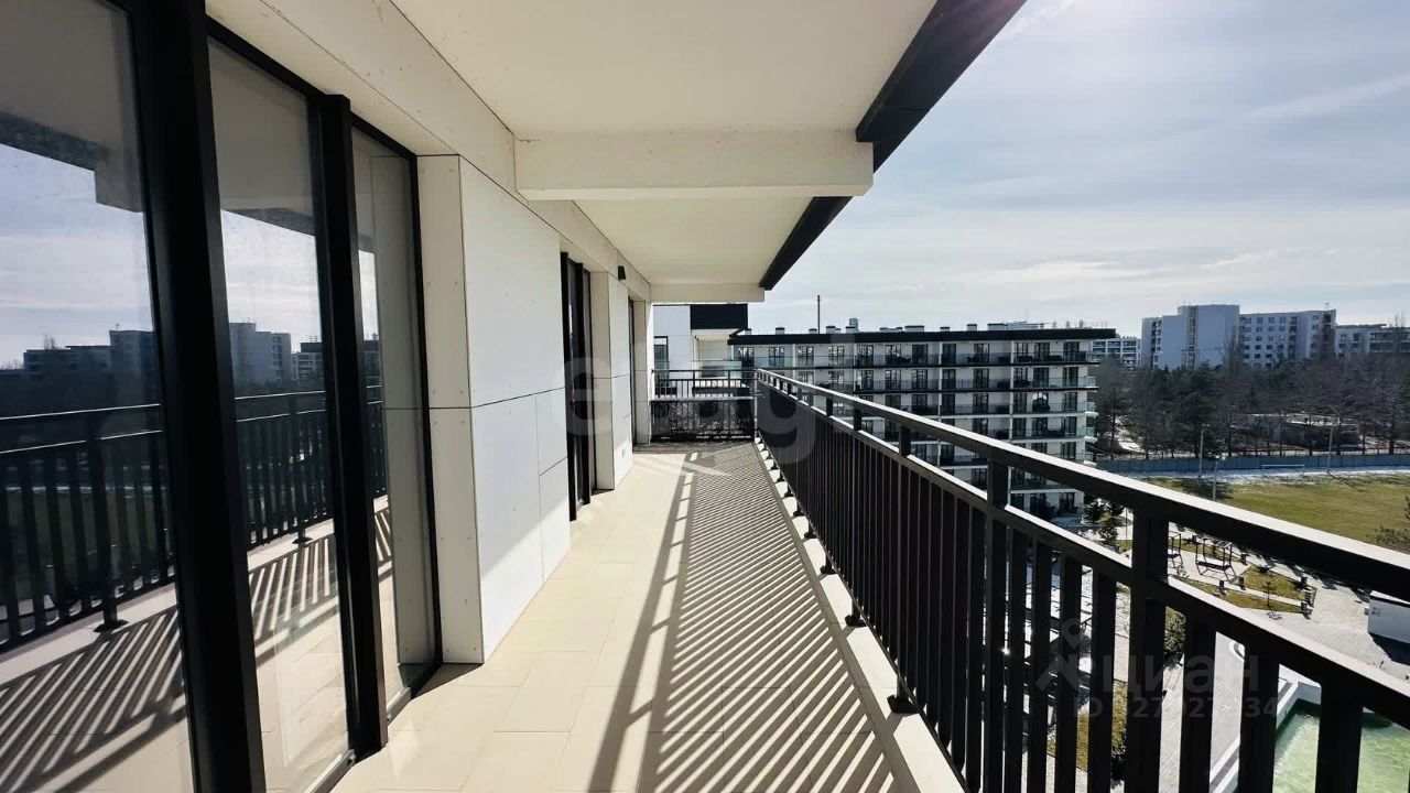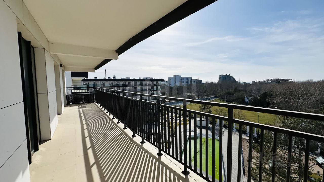 Изысканные апартаменты 101кв.м. на 7 этаже с уникальной террасой 26,8кв.м, опоясывающей весь периметр. Потрясающий вид на море и бассейн круглый год.